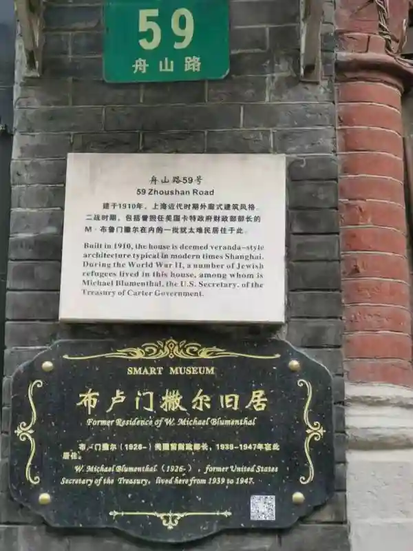 如今,在长阳路与舟山路十字路口,是上海犹太难民纪念馆。纪念馆院落中的难民名单墙上,刻着18578位犹太人的名字。人们从中能找到“沃尔夫冈·弗兰克尔”,也能找到“迈克尔·布卢门撒尔”,他们依然靠得如此之近。